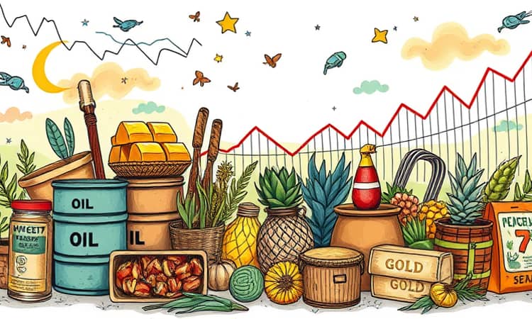 - Productos agrícolas: maíz, trigo, soja, café y azúcar, cuyos precios fluctúan según condiciones climáticas y políticas comerciales.